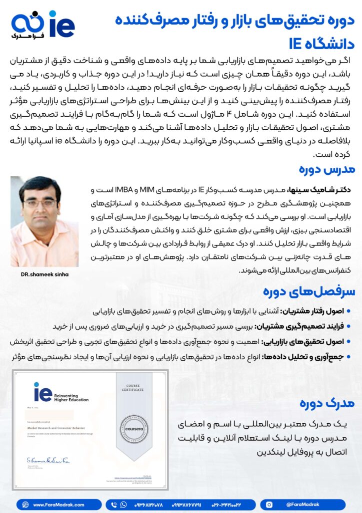 دوره تحقیقات و رفتار مصرفکننده هماکنون در آکادمی آموزشهای بینالمللی فرا مدرک به زبان فارسی ارائه شده است.