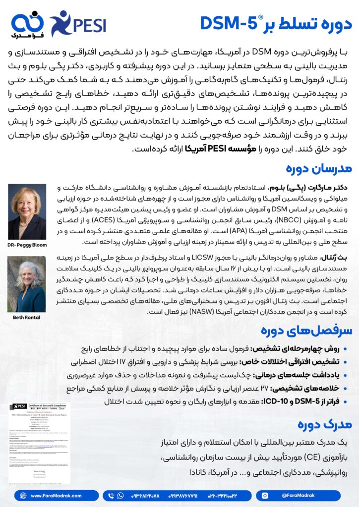 دوره تسلط بر DSM-5، هم اکنون در آکادمی آموزشهای بینالمللی فرا مدرک به زبان فارسی ارائه شده است.
