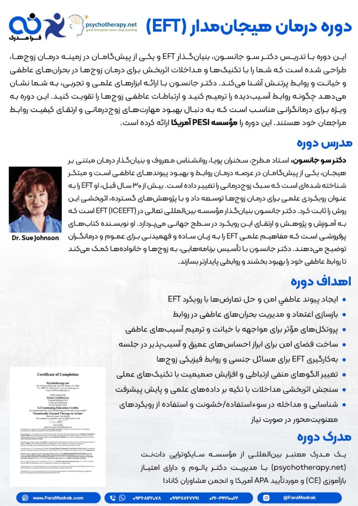 دورۀ درمان هیجانمدار (EFT)، هم اکنون در آکادمی آموزشهای بینالمللی فرا مدرک به زبان فارسی ارائه شده است.