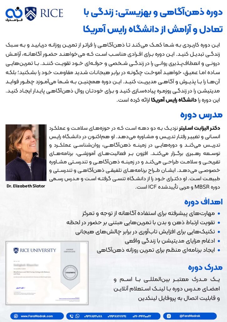 2 پاسخ دادن به “دوره ذهنآگاهی و بهزیستی: زندگی با تعادل و آرامش از دانشگاه رایس”