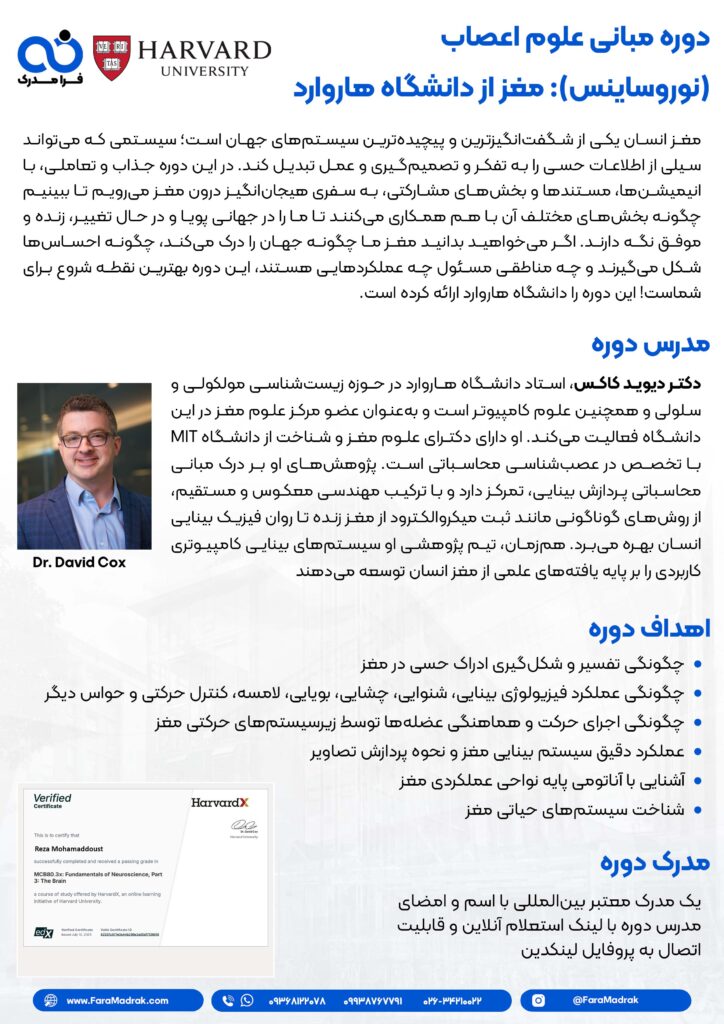 دوره مبانی علوم اعصاب دانشگاه هاروارد همراه با مدرک معتبر بینالمللی با قیمت ۶میلیون ارائه میگردد